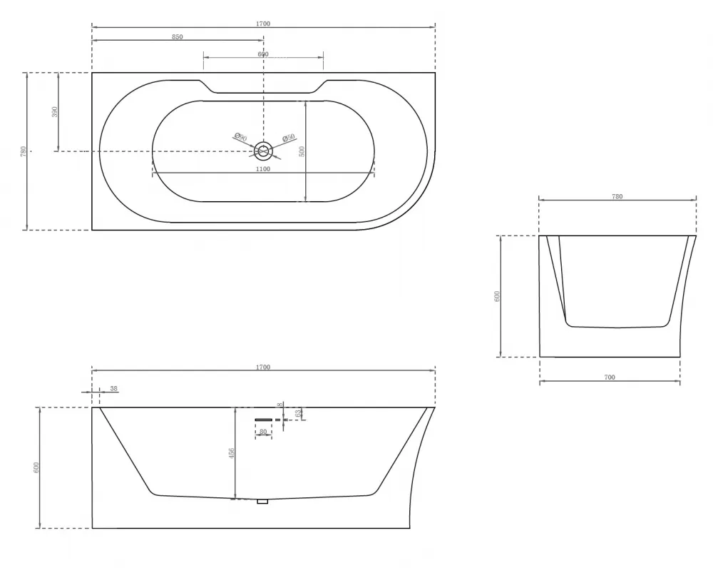 Акриловая ванна ABBER AB9335-1.7 L