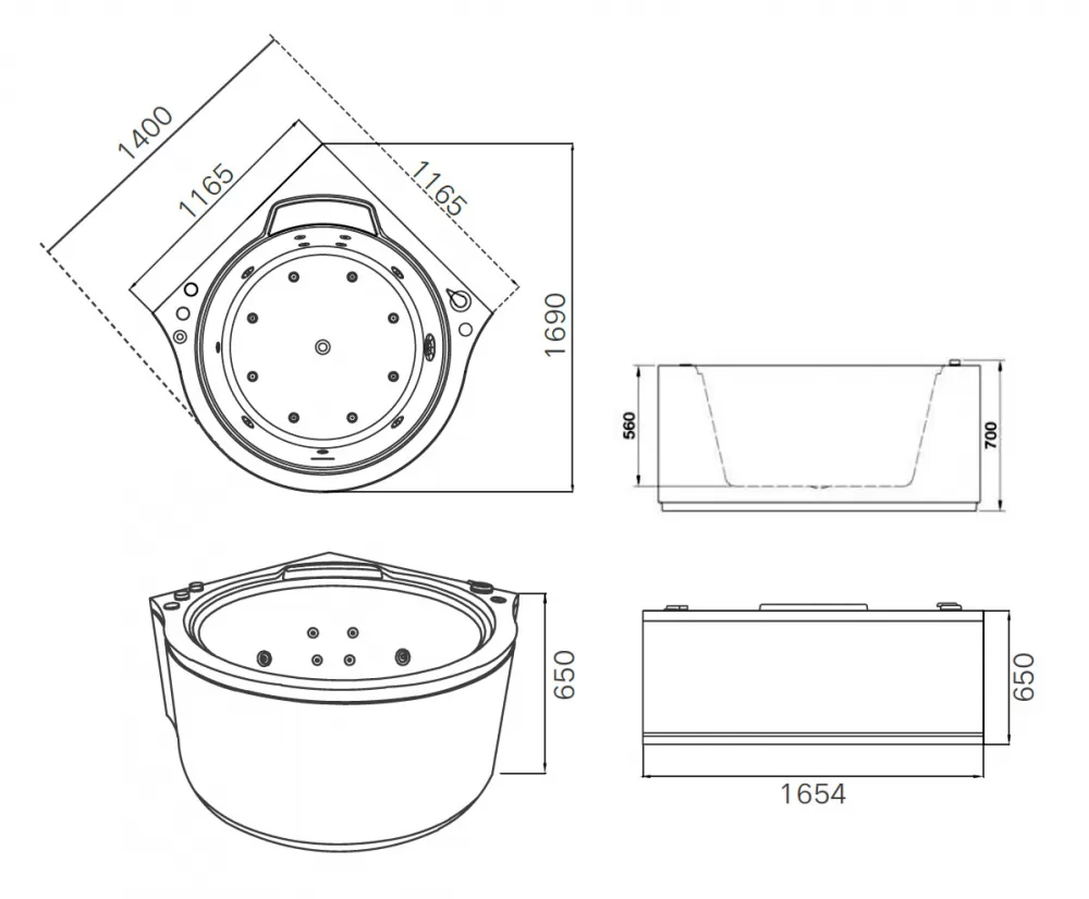 Акриловая ванна Gemy G8040 C L (комплектация без гидромассажа)