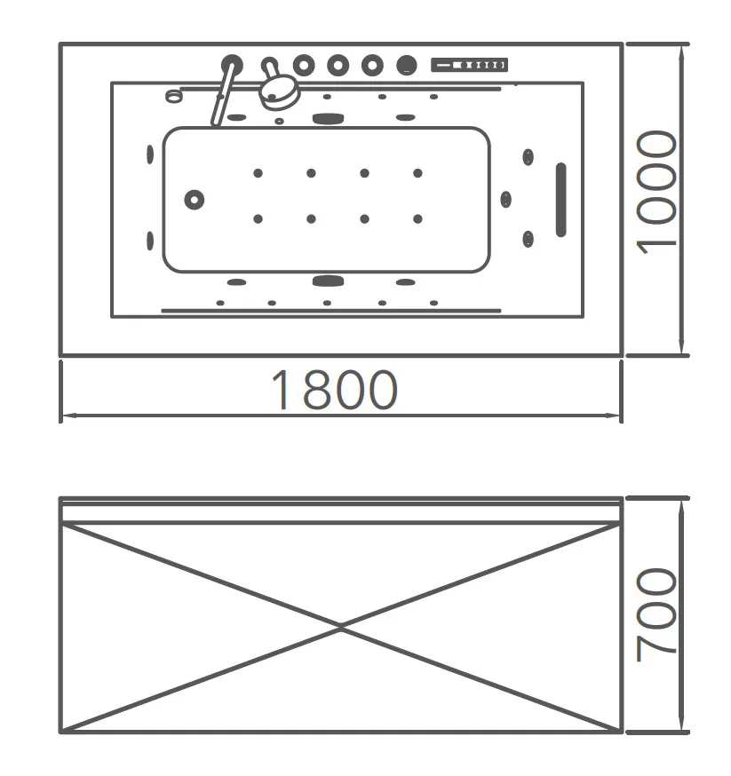 Комплектация | каскадный массаж, смеситель с изливом, душевая лейка |
