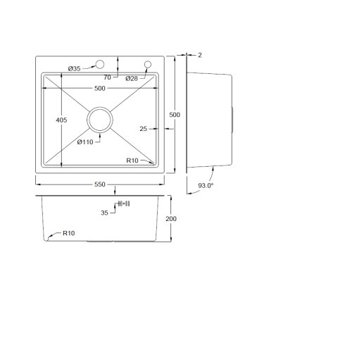 Кухонная мойка Avina FUTUR ECO F 55х50 НЕРЖ DECOR с коландером и дозатором – прочная и надежная модель с глубокой чашей. Монтаж – врезной (на или вровень со столешницей). Изготовлена из нержавеющей стали с декорированной поверхностью, толщиной: верх – 2 мм, дно – 1 мм. Мойка имеет заводское шумопоглощающее покрытие по всему корпусу. Поверхность модели – декорированная, за счет специальной нано структуры устойчива к механическим и химическим воздействиям. Чаша снабжена переливом – небольшим сливным отверстием, предназначенным для отвода воды при случайной блокировке основного отверстия слива. Диаметр сливного отверстия – 3.5 см.