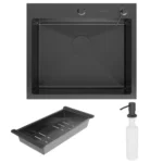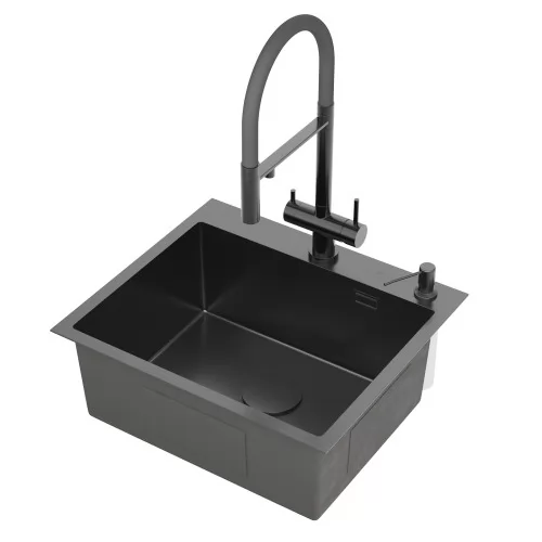 Кухонная мойка Roxen Simple 55 PVD Black 55х48 с коландером и дозатором в комплекте. Удобная модель с глубокой чашей и квадратным отверстием слива, сочетает в себе стильный современный дизайн и отличные эксплуатационные характеристики. Мойка изготовлена из аустенитной низкоуглеродистой стали марки AISI 304, которая обладает устойчивостью к коррозии, окислению и перепаду температур. Уникальное покрытие Bruch Tech является защитным слоем, устойчивым к истиранию, появлению царапин и механических повреждений. Отличные шумопоглощающие характеристики мойки обеспечиваются шумоподавляющим составом Silent Protection и шумопоглощающими пластинами Silent Protection, которые располагаются по всей чаше мойки.