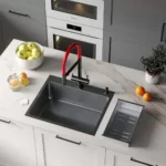 - В мойке сделано 2 заводских отверстия для смесителя и дозатора