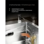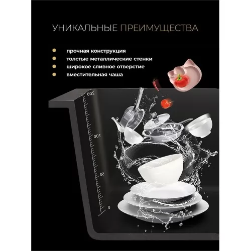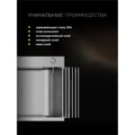 Кухонная мойка Roxen Snake 50 PVD (графит) с коландером и дозатором в комплекте. Современная вместительная модель премиального сегмента с глубокой чашей и широким отверстием слива, сочетает в себе стильный современный дизайн и отличные эксплуатационные характеристики. Мойка изготовлена из аустенитной низкоуглеродистой стали марки AISI 304, которая обладает устойчивостью к коррозии, окислению и перепаду температур. Толщина стали исключает деформацию и обеспечивает долгий срок эксплуатации. Уникальное покрытие PVD Tech является защитным слоем, устойчивым к истиранию, появлению царапин и механических повреждений. Отличные шумопоглощающие характеристики мойки обеспечиваются шумоподавляющим составом Silent Protection и шумопоглощающими пластинами Soft Silence, которые располагаются по всей чаше мойки.