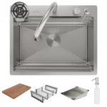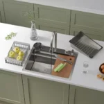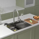 Мойка Stage Plus продумана до мелочей, которые значительно повышают функциональность мойки, экономят кухонное пространство и делают ее использование комфортным и приятным. Удобный смеситель с поворотом 360° с вытяжным изливом имеет 3 режима подачи воды. Встроенный каскадный душ особенно удобен для мытья овощей и фруктов. Переключение потока воды с смесителя на каскадный душ осуществляется поворотным дивертером, расположенным на бортике мойки. Ринзер быстро и легко справится с ополаскиванием стеклянных бокалов, стаканов, детских бутылочек, термосов и др. Встроенный дозатор на 300 мл не только позволит сделать мытье посуды более удобным и экономичным, но и значительно сократит расход моющего средства и сэкономит место на столешнице. Разделочная доска и идеально ложится на специальные выстыпы на бортах мойки. Коландер удобен для разморозки продуктов, сушки и полоскания небольшой посуды, для мытья овощей, фруктов, так же его можно использовать в качестве дуршлага.